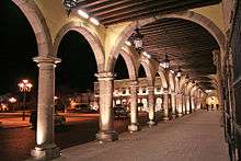 With the establishment of Spanish rule in Mexico, the first churches and monasteries were built utilizing architectural principles of classical order and the Arabic formalities of Spanish mudéjarismo.[4] Great cathedrals and civic buildings were later built in the Baroque and Mannerist styles, while in rural areas estate manor houses and hacienda buildings incorporated Mozarabic elements. The syncretic Indian-Christian mode of architecture developed organically as Indians interpreted European architectural and decorative features in the native, pre-Columbian style called tequitqui ("laborer" or "mason", from Nahuatl).[5]