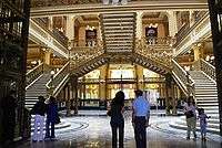 The Biblioteca Palafoxiana, considered by some historians the first public library in the Americas, was founded in 1646 by Bishop Juan de Palafox y Mendoza of Puebla, with a gift of 5,000 volumes[19] to the Colegio de San Juan (which he had also founded), on the condition that they be made available to the general public,[20] and not just to ecclesiastics and seminarians.