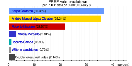 - ↑ "Mexico vote result on knife-edge". BBC News. July 6, 2006. Retrieved May 12, 2010.