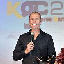 ![]() Accepting the Game Design of the Year award at Korea Games Conference, October 2012. | |