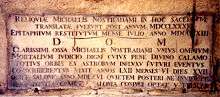 Nostradamus' current tomb in the Collégiale Saint-Laurent, Salon, into which his scattered remains were transferred after 1789.