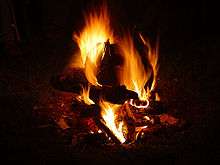 In the Finnish midsummer celebration, bonfires (Finnish kokko) are very common and are burned at lakesides and by the sea.[5][12] Often branches from birch trees (koivu) are placed on both side of the front door to welcome visitors.[13] Swedish-speaking Finns often celebrate by erecting a midsummer or maypole (Swedish midsommarstång, majstång).[14] Some Finland Swedes call the holiday Johannes after the Finnish term juhannus – or more accurately after the Biblical John the Baptist (="Johannes Döparen" in Swedish).