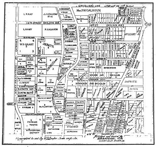 5. "Suburbs will not be annexed now: The Rice measure tabled by Council yesterday afternoon", Atlanta Constitution, October 27, 1897. North Atlanta was defined as the area including today's Midtown between Myrtle St. in the Midtown Historic District and Cherry St., now inside the Georgia Tech campus, as far north as 14th St (then called Wilson Ave.); most of what is now the Georgia Tech campus, south of what was then 5th Street; and the area west of Georgia Tech, south of Jefferson St., as far west as Ashby St. (now Lowery Blvd.), including today's English Avenue neighborhood.