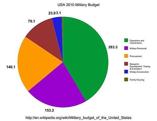 For the 2011 fiscal year, the president's base budget for the Department of Defense and spending on "overseas contingency operations" combine to bring the sum to US$664.84 billion.[2][3]