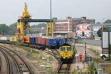 Millbrook Freightliner Terminal is located next to the station on the up side. A car terminal and rail access to Southampton's Western Docks can be seen from the down side of the station.