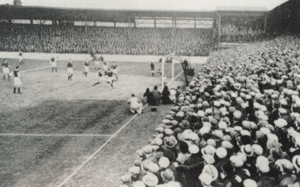Between 1919 and 1930 the clubs played each other 12 times in the London Professional Footballers Association Charity Fund, London Challenge Cup and the FA Cup.[31] On 15 February 1930, West Ham won the Fifth Round FA Cup game 4–1 at Upton Park; Vic Watson scored two goals, and Viv Gibbins and Tommy Yews one each. Harold Wadsworth replied for the Lions.[32] The teams met for the first time in the Football League in the 1932–33 season, after West Ham were relegated from the First Division.[31] On 17 September 1932, West Ham beat Millwall 3–0 at Upton Park in the Second Division, two goals being scored by George Watson and one by Jackie Morton.[33]