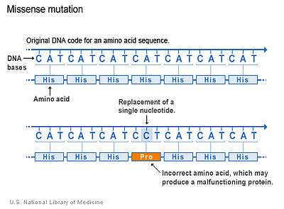 - ↑ "Definition of Missense mutation". MedTerms medical dictionary. MedicineNet. 2012-03-19.