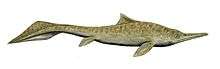 Mixosaurus is an extinct genus of Middle Triassic ichthyosaur.[1] It was the most common genus of Triassic ichtyosaurus: its fossils have been found all over the world, including China, Timor, Indonesia, Italy, Spitsbergen, Svalbard, Canada, as well as Alaska and Nevada in the US.[2] It was named in 1887 by George H. Baur. The name means "Mixed Lizard", and was chosen because it appears to have been a transitional form between the eel-shaped Ichthyosaurs such as Cymbospondylus and the later dolphin-shaped ichthyosaurs, such as Ichthyosaurus. Baur named Mixosaurus as a new genus because its forefin was sufficiently different from that of Ichthyosaurus.[2]