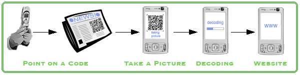 The reason for the success of mobile tagging, besides the flexible and multiple fields of application, is the quick, precise and customer-driven access to information. According to the principle of physical world connection (see also Object hyperlinking), the user is able to gather digital information immediately by scanning a two-dimensional barcode, like one on an advertisement.