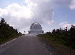 Observatoire du Mont Mégantic (OMM) is located on the mountain's summit, which is the highest point in Québec accessible by road. The mountain is in the middle of the 55 km² Parc national du Mont-Mégantic.[3] The annual Tour de Beauce bicycle race is routed over Mont Mégantic.