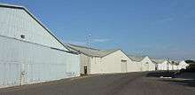 To the immediate south of the Heritage Centre stand three aircraft hangars which are believed to be the oldest known example of their type in the world. The hangars were built at the end of 1913 and first used in early 1914 to house No. 2 Squadron when they moved to the airfield from Upper Dysart. Their design was based on Indian Army Sheds modified by Major Burke to house aircraft and were pre-fabricated in Glasgow before being transported to Montrose. The buildings were constructed of wood with corrugated iron roofs and each one had two gabled openings. The hangars were built in a curve following the path of railway line which used to be at the rear of the buildings.