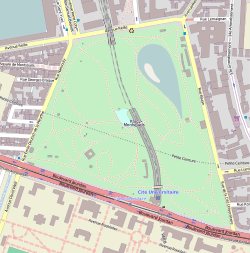 Parc Montsouris is a public park in the 14th arrondissement of Paris, at the southern edge of Paris directly south of the center. Opened in 1869, Parc Montsouris is one of the four large urban public parks, along with the Bois de Boulogne, the Bois de Vincennes and the Parc des Buttes Chaumont, created by Emperor Napoleon III and his Prefect of the Seine, Baron Haussmann, at each of the cardinal points of the compass around the city, in order to provide green space and recreation for the rapidly growing population of Paris.[1] The park is 15.5 hectares in area, and is designed as an English landscape garden.[2]