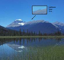 Mount Saskatchewan with magnified inset of Lighthouse Tower.