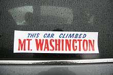 The Auto Road may be traversed by private vehicles, and there are also guided tours in vans, called stages. The toll on private cars includes a bumper sticker with the text, "THIS CAR CLIMBED MT. WASHINGTON".