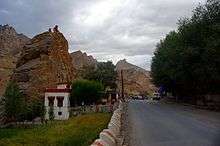 Nearby are some ancient inscriptions written in Kharosthi script.[7] There is also an edict issued to the local people to discontinue sacrificing goats by King Lde, who ruled western Ladakh c. 1400 CE, while his younger brother, Dragspa, ruled the rest.
