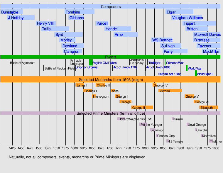 Timeline of British classical music, and its preceding forms