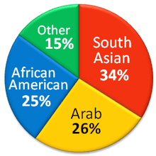 According to the U.S. Department of State, the largest ethnic groups of American Muslims are those of South Asian, Arab and African-American descent.