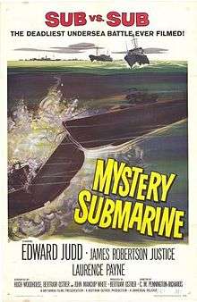 Mystery Submarine is a 1963 British war film directed by C.M. Pennington-Richards and starring Edward Judd, James Robertson Justice and Laurence Payne.[1] A captured German submarine is used by the Royal Navy to trick a German force aiming to intercept a supply convoy. The film is based on a play by Jon Manchip White.
