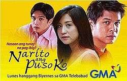 Narito Ang Puso Ko (Here Is My Heart) is a Filipino drama series produced by GMA Network and directed by Enrico Quizon and actress, Gina Alajar. This is also Jolina Magdangal's very first drama series in GMA Telebabad. The series premiered June 9, 2003, replacing Kung Mawawala Ka and concluded March 5, 2004.[1]