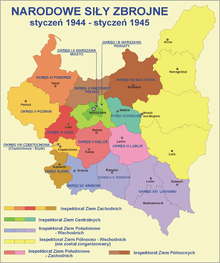 Narodowe Siły Zbrojne (English National Armed Forces, NSZ) was a Polish anti-Nazi and later anti-Soviet military organization which was part of the Polish resistance movement in World War II. The NSZ fought the Nazi Germany and Soviet forces, regarding them as occupiers and enemies of independent Poland. The NSZ was also engaged in fighting Soviet-allied Polish communist partisan forces, such as Gwardia Ludowa and Armia Ludowa. The NSZ was the third largest Polish resistance movement of World War II, after the Home Army and Bataliony Chłopskie. The number of its soldiers ranged from 70,000 to 75,000. It was a right-wing organization which was accused of antisemitism[1][2] or killing Jews during and after the war.[3]