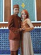The National costume of Indonesia are the national costume that represent the Republic of Indonesia. It is derived from Indonesian culture and Indonesian traditional textile traditions. Today the most widely recognize Indonesian national costume are Batik[1] and Kebaya, although originally those costumes mainly belong within the culture of Java and Bali, most prominently within Javanese, Sundanese and Balinese culture.[2] Since Java has been the political and population center of Indonesia, folk costume from the island has become elevated into national status.