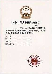 - 1 2 "Applications for naturalisation as Chinese nationals". Info.gov.hk. 2005-05-18. Retrieved 2011-05-28.