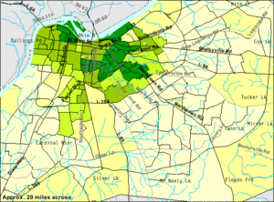 The oldest neighborhoods are the riverside areas of Downtown and Portland (initially a separate settlement), representing the early role of the river as the most important form of commerce and transportation. As the city expanded, peripheral neighborhoods like Butchertown, Phoenix Hill, Russell, Shelby Park, Smoketown and others were developed to house and employ the growing population.