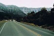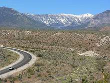 Kyle Canyon Road has existed since at least 1933, having been established as a county road connecting Charleston Peak (in what was then Dixie National Forest) to State Route 5 (now US 95) at Tule to the east.[2] By 1935, the entire 21 miles (34 km) of the highway had been paved and designated as State Route 39 by the state.[3]