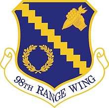 In October 2001, the wing was redesignated the 98th Range Wing and began operating the range facilities of the Air Warfare Center from Nellis Air Force Base, Nevada.[2] It replaced the 99th Range Group and 99th Range Squadron of the host unit at Nellis, the 99th Air Base Wing. Its mission is to provide a flexible and realistic "battle space" to support training, testing, and tactics development, for which it controls the airspace over 12,000 square nautical miles, 7,000 of which are shared with civilian aircraft.[4]