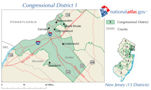 New Jersey's 1st congressional district is a congressional district in the U.S. state of New Jersey.