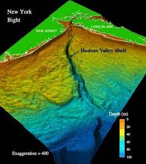 The sea floor of the New York Bight consists largely of continental shelf and includes the Hudson Canyon, an undersea Pleistocene submarine canyon, which was formed by the Hudson River during the ice ages, when the sea level was lower.[6] The bight includes major shipping channels that access New York Harbor.