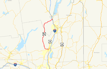 New York State Route 9N (NY 9N) is a north–south state highway in northeastern New York in the United States. It extends from an intersection with U.S. Route 9 (US 9), NY 29, and NY 50 in the city of Saratoga Springs to a junction with US 9 and NY 22 in the Clinton County village of Keeseville. At 143.49 miles (230.92 km) in total length, NY 9N is the longest letter-suffixed route in the state. It is concurrent with its parent route for 1 mile (1.6 km) in the village of Lake George and for three blocks in the hamlet of Elizabethtown.