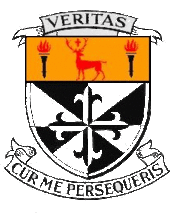 The College coat of arms bears two mottos. Veritas (Latin for 'Truth') is the motto of the Dominican Order. Cur me persequeris ('Why do you persecute me?') is the motto of the Eustace family, who donated the land upon which the school is built. The reference is to the legend of Saint Eustace, who, while out hunting, encountered a stag with a cross between his antlers (visible in the College's arms); the stag addressed the saint in the terms of the motto.