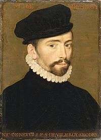 Nicolas IV de Neufville, seigneur de Villeroy (1543 – 12 November 1617) was a secretary of state under four kings of France: Charles IX, Henry III, Henry IV, and Louis XIII. The most distinguished of all sixteenth-century French secretaries,[1] Villeroy rose to prominence during the French Wars of Religion, a period of almost insoluble difficulties for the French monarchy and government. Despite faithfully serving Henry III, Villeroy found himself sacked by him without explanation in 1588, along with all the king's ministers. He was reinstated by Henry IV in 1594 and became more important than ever before. He remained in office until his death in 1617 during the reign of Louis XIII.