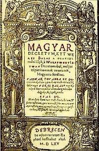 The Latin became the language of the nobility.[1] It represented that Hungary belonged to the western states in the modern historical consciousness and served as a symbol of independence against German expansion. It also symbolised that the nobility had a common culture.[1] Latin was used at tribunals and served as lingua franca in the spheres of official life.[1]