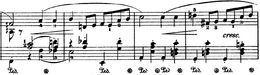 If this ["continuously developing melodic strand"] causes a certain monotony, then it is the same brand of monotony that one's own inner stream of consciousness can, at times, engender. It is as if the composer has abandoned all the external trappings of nocturne "form" in order to place a greater emphasis on the essence of the genre's sentiment.