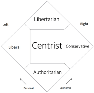 The Nolan Chart is a political view assessment diagram created by David Nolan in 1969. The chart divides human political opinions into two vectors – economic opinion and personal opinion – to produce a type of Cartesian chart. It expands political view analysis beyond the traditional "left–right" line, which measures politics along a one-dimensional line, into a graph with two dimensions: degrees of economic and personal freedom.
