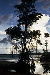 Towards the western part of the NEC in the segment known as El Convento there is a coastal forest older than seventy-years (rare, due to deforestation in this area) with all but one species being native. Some of these species that can be found here are the gumbo-limbo (Bursera simaruba), the white cedar (Tabeuia heterophylla) and the ortegon (Coccoloba rugosa). Further to the west is Las Paulinas sector where the coastal valley is traversed by a gallery forest along the banks of the Juan Martín River. At the mouth of this river is one of the few remaining Pterocarpus forests in Puerto Rico, being dragonsblood tree (Pterocarpus officinalis) the prevailing species.[34]