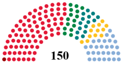 All 150 seats in the Norwegian Parliament 76 seats were needed for a majority |