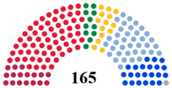 All 165 seats in the Norwegian Parliament 83 seats were needed for a majority |
