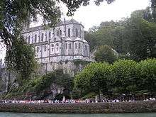 The Basilica of Our Lady of the Immaculate Conception (French: Basilique de Notre-Dame de l'Immaculée-Conception de Lourdes), known widely as the "Upper Church", is a Roman Catholic church and minor basilica within the Sanctuary of Our Lady of Lourdes in France. Constructed between 1866 and 1872 and consecrated in 1876, it was the second of the churches to be completed. The church was built on top of the rock above the Grotto and next to the Basilica of our Lady of the Rosary .