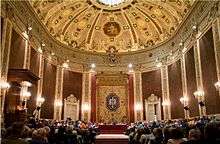 Little remains of the Novitiate House. The perimeter walls of the Church survive, used for building the paraninfo of the university, although its original plan in a Latin cross was transformed into a huge ellipse, similar to it of the Spanish Senate. Of the rest of the complex are preserved the spaces of the two ancient cloisters, converted into courtyards, around which the various offices and classrooms are distributed. The huge building of the former Central University has many uses today. Its northern part, where is the paraninfo (auditorium), still linked to the Complutense University. In the southwestern corner is the Instituto Cardenal Cisneros, while the rest of the complex depends of the Ministry of Education and Science. The Board of Education of the State is one of the ministerial institutions have its headquarters here.[2]