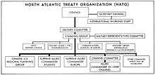 The Structure of the North Atlantic Treaty Organisation is complex and multi-faceted.[1] The decision-making body is the North Atlantic Council (NAC), and the member state representatives also sit on the Defence Planning Committee (DPC) and the Nuclear Planning Group (NPG).[2] Below that the Secretary General of NATO directs the civilian International Staff, that is divided into administrative divisions, offices and other organizations. Also responsible to the NAC, DPC, and NPG are a host of committees that supervise the various NATO logistics and standardisation agencies.