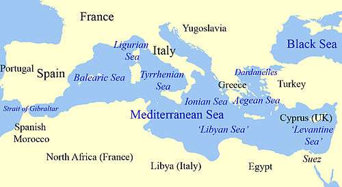 The agreement provided that any submarine that attacked neutral shipping was to be sunk if possible, including submarines in the vicinity of a recent attack that were determined to be responsible for the attack.[32] French and British fleets would patrol the seas west of Malta and attack any suspicious submarines,[26] with the division of patrols between the United Kingdom and France to be decided by their governments. Both countries would patrol the high seas and territorial waters of signatory countries in the Mediterranean.[32] The British would provide slightly more than half the 60 destroyers needed, with the French providing the remainder and most of the accompanying aircraft.[33] It was agreed that Italy could participate in patrols of the Tyrrhenian Sea if it wished to do so.[31] In the Eastern Mediterranean, British and French ships would patrol up to the Dardanelles, but not in the Adriatic Sea. In this area, signatory countries would patrol their own territorial waters, and would provide any reasonable assistance to the French and British patrols. The future revision of these provisions, including the way the area had been divided into zones, was specifically allowed.[32] Submarine activity would be banned, subject to two exemptions: travel on the surface accompanied by a surface ship, and activity in certain areas for training purposes. Governments would only allow foreign submarines into each of their territorial waters in extreme situations, such as immediate distress. Merchant shipping would also be advised to stick to particular shipping routes.[32] The agreement repeated the suggestion that Italy join in the proposal.[34] Delbos announced that similar proposals about surface craft would be prepared. The provisions of the agreement would come into force on 20 September.[31] The British and French knew that the secret Italian submarine operations had already been paused,[30] but actions to enforce the conference agreement started at midnight on 19/20 September.[31] The delegates to the agreement were happy; The Times likened them to cricketers, "reviewing their innings, over by over".[31][35]