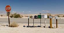 Ocotillo Wells County Airport offers two dirt runways.[1] Runway extents are marked by white paving blocks. The Los Puertecitos Historic Site is on State Route 78 about 1.5 miles (2.4 km) west of the community.[2] Gasoline is available in Borrego Springs (17 mi or 27 km west), in Westmorland (18 mi or 29 km east) and at the Blu-In Cafe (3 mi or 4.8 km east). Gas may not always be available the Blu-In Cafe which, besides the gas station, operates a restaurant, store, and RV park. Gas has not been available at the Blue-In in over 3 years (2011). Several other small businesses sell off-road accessories and rent all-terrain vehicles. Most businesses in the area are closed during the summer months. My Desert Rose, which was a traditional restaurant located at the intersection of Highway 78 and Split Mountain Road, burned down in 2008.