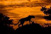 Species include African bush elephant, African buffalo, hippopotamus, lechwe, tsessebe, sitatunga, blue wildebeest, Angolan giraffe, Nile crocodile, Southwest African lion, South African cheetah, African leopard, brown hyena, spotted hyena, springbok, greater kudu, sable antelope, south-central black rhinoceros, southern white rhinoceros, Burchell's zebra, common warthog and chacma baboon. Notably the endangered Cape wild dog survives within the Okavango Delta,[8] exhibiting one of the richest pack densities in Africa. The delta also includes over 400 species of birds, including African fish eagle, Pel's fishing owl, crested crane, lilac-breasted roller, hammerkop, ostrich, and sacred ibis.