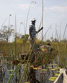 - ↑ Bradley, John H. (October 2009). "Gliding in a Mokoro Through the Okavango Delta, Botswana". Cape Town to Cairo Website. CapeTowntoCairo.com. Retrieved 2009-11-10.