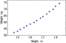 The following data set gives average heights and weights for American women aged 30–39 (source: The World Almanac and Book of Facts, 1975).