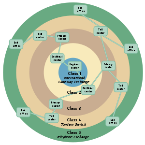 The underlying principle of the five-level hierarchy was to provide economies of scale by establishing direct connections between centralized call "collection points" (essentially the Class 4 offices) where economically feasible, and to provide additional concentration points (Class 1 through 3) to handle overflow traffic that could not be handled directly, or to handle traffic to locations which were less likely to be dialed from a given point - usually longer distances and/or smaller locations in other parts of the North American dialing plan. The North American plan differed from those of other continents in the existence of three concentration levels of hierarchy for domestic (here defined as including all those points "within" the dialing plan) calls, a need not required where the larger geographic area was broken into several national plan jurisdictions. However, it is important to note that this was not a strict hierarchy of absolute levels. If enough call traffic existed between geographic areas, for example, a Class 4 office could have direct trunk connections not only to a Class 3 office, but to a Class 2 or Class 1 office, and vice versa. For example, the Class 2 switch in Toronto (TOROON0101T2) had connections not only to the Class 1 switch in Montréal (MTRLPQ0201T1), but to the Class 1 switch in White Plains (WHPLNY0201T1), one of the Class 2 switches in New York City (NYCMNYAA02T2) and a Class 3 switch in Buffalo (BFLONYFR04T3). Network engineers re-worked the system as necessary to balance off call completion percentages with budgetary limitations. In fact, minor changes were made almost every month.