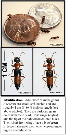 7. 1 2 "Just the facts…Paederus Beetles" (PDF). US Army Public Health Command. Retrieved 30 July 2011.